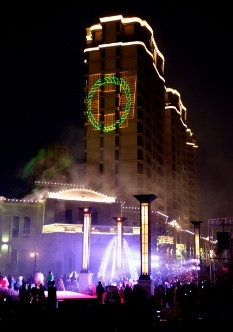 而比楼宇激光秀更美的是接下来的烟花表演。当炫丽的烟花在夜空中恣意地绽放,看见有为迎接圣诞而盛装打扮的女子和小孩的脸被烟火衬托得格外美丽,那种享受而又陶醉的表情让人顿生爱怜和感动,一如圣诞传说中的天使,让人仿佛只身梦景。在场的好多业主和工作人员,纷纷拿出相机记录下这精彩而美丽的瞬间。