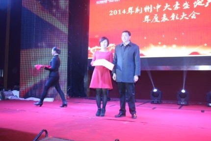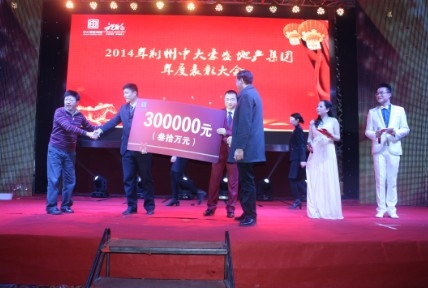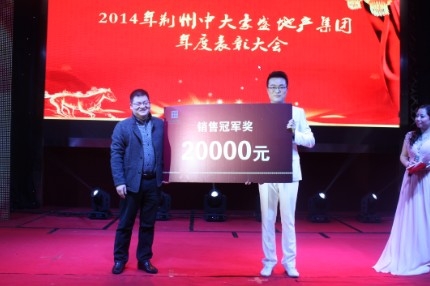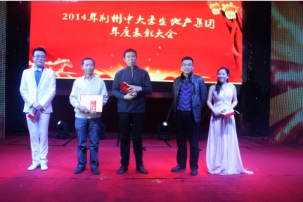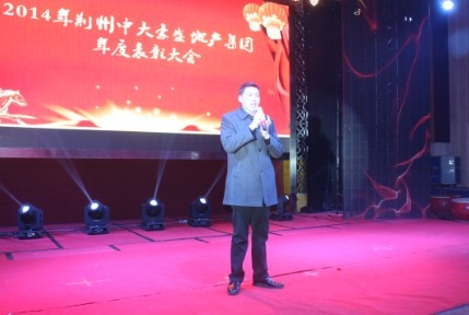 颁奖仪式结束后,总经理王林上台发表新春致辞。王总首先向大家表示新年祝福,和大家一起回顾了集团2013年的发展历程,肯定了2013年集团取得的辉煌成绩;最后王总表示:面对2014,我们要众志成城,更加坚定信念,开拓进取,继续保持创业者的心态,积极推动集团运营结构的全面优化,精益求精,以提高经济效益为重心,统筹谋划好楚天都市佳园、楚天都市朗园、楚天都市天街三盘联动;借力10月份在荆州召开的第十四届省运会,积极做好营销宣传推广工作,力争实现“中大豪盛”企业品牌和“楚天都市”系列产品品牌效益的最大化,让中大豪盛持续领跑荆州地产!
