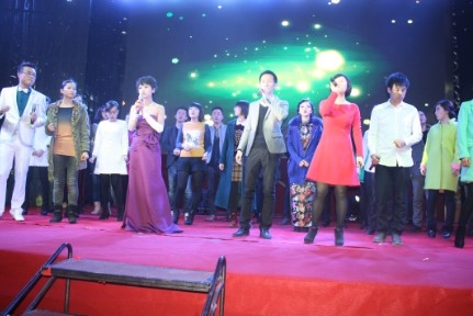 团年盛宴气氛异常活跃,大家频频举杯,互道祝福,期间还穿插了抽奖活动、“我最喜爱的表演节目”评选和自由点歌演唱等活动。年会特意设置了各类丰富的奖品进行现场抽奖,大家一边吃着团年宴,一边不时接受幸运的眷顾,层层的抽奖环节令人激动不已。通过现场投票,评选出了5个“我最喜爱的表演节目”,即舞蹈《相思赋予谁》、歌曲串烧《闪耀218》、歌舞《爸爸去哪儿》、舞蹈《追梦人》和情景剧《光阴的故事》。为了奖励本次年会的组织者,集团领导临时决定增设了一个“优秀组织奖”,奖给综合管理部和企划营销部。