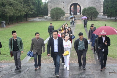 第二天大家分别参观了钟祥县新农村建设典范彭墩村、钟祥县博物馆和世界文化遗产明显陵。明显陵让人印象最为深刻。其原始建筑和环境风貌保存完好,建筑规模宏大,陵寝结构独特,文化内涵丰厚,堪称中国帝陵的璀璨明珠。行走其间,无不感叹古人的智慧,特别是其新旧两重红门不在一条中轴线上、有别于中国古代传统建筑的创新设计,让明显陵成为了中国明代“陵制当与山水相称”的陵寝建筑文化的成功范例。