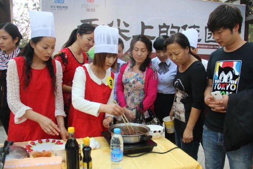 剁椒鱼头、麻辣牛肉干、家常豆腐……随着锅碗瓢盆的碰撞声,一盘盘色香味俱全的美食让人垂涎欲滴。10月26日下午,楚天都市·佳园首届社区邻里厨艺秀火热开展。在这场主题为“舌尖上的佳园”的活动中,18组业主参赛选手轮番上场秀厨艺,让现场百余名业主欢声笑语不断。历经一个小时的紧张比拼,7号选手周鹏以一道剁椒鱼头夺得一等奖,雷清华、贾明财获二等奖,廖琼、陈凤玲、王尚平获三等奖。