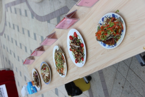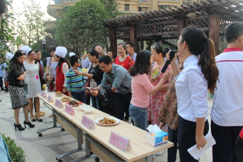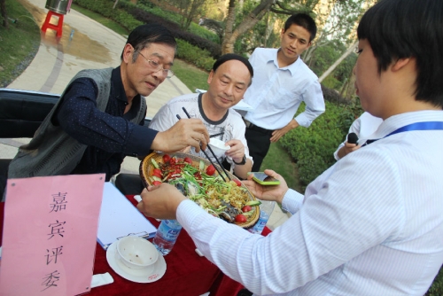 现场的评委由3名业主代表和2名雪里红酒店大厨组成。雪里红酒店的大厨朱孝华对业主的手艺赞不绝口,认为他们“厨艺都很不错,是用心在做菜……”有的选手还给菜取了“漂洋过海”“锦绣家园”等好听且有寓意的名字,让人耳目一新。评委品鉴后,现场的业主拿着筷子争相大快朵颐,不时交流烧菜心得,并为自己喜欢的菜品投票。