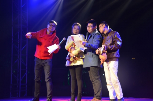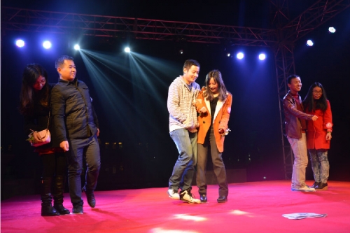 现场气温微低,但在主持人的妙语连珠下,气氛很快被调动起来,年轻的单身男女嘉宾踊跃登台,通过参加游戏碰出缘分的火花。