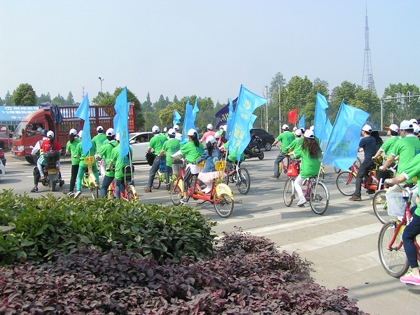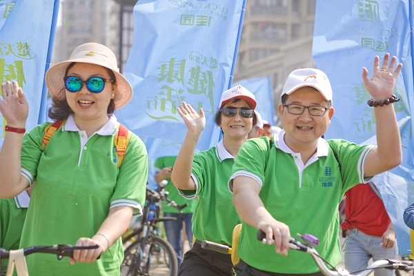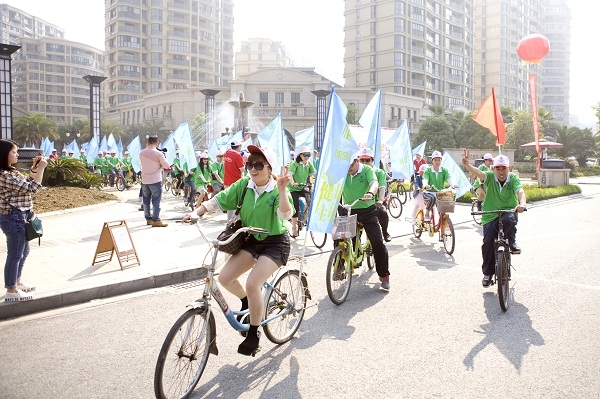 当日上午8时许,参与活动的业主家庭陆续到楚天都市•佳园南门集合、签到,完成分组并领取统一服装,做出发前的准备工作。因为本次活动是以家庭为单位,物业专门准备了两人和三人骑的亲子自行车,让大家在家人和朋友的陪伴下,享受春日里明媚的阳光。