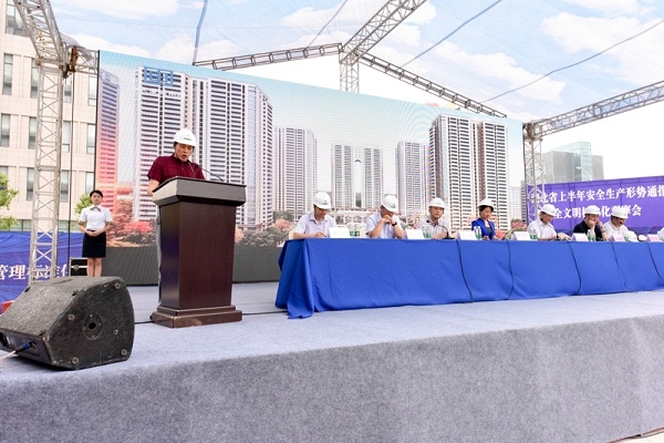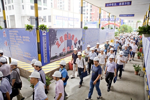 会议通报了全省上半年安全生产形势,请优秀施工企业代表作经验介绍。会后与会代表观摩了楚天都市·朗园安全文明标准化施工现场,大家纷纷对整洁有序的施工环境和各项先进的安全措施表示高度赞赏。有代表欲乘坐施工电梯进入在建住宅楼参观,电梯操作工李师傅严格按荷载9人的规定操作,让大家感慨安全标准已成为习惯。塔吊喷淋系统和道路洗车槽能让施工扬尘减少85%,也成为关注焦点。