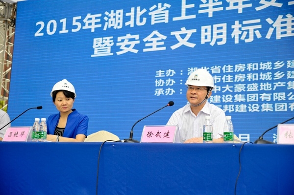 湖北省住建厅总工程师徐武建(左二)、荆州市副市长吕晓华(左一)作重要讲话