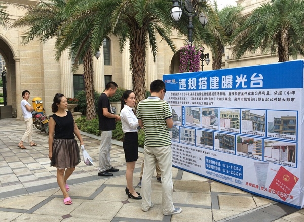 在环境维护方面,地产、物业联合城管部门整治违章建筑,目前已对园区12户构建违章建筑的业主下达了《责令停工通知书》和《限期拆除通知书》。对不能自行拆除的,将强制拆除。