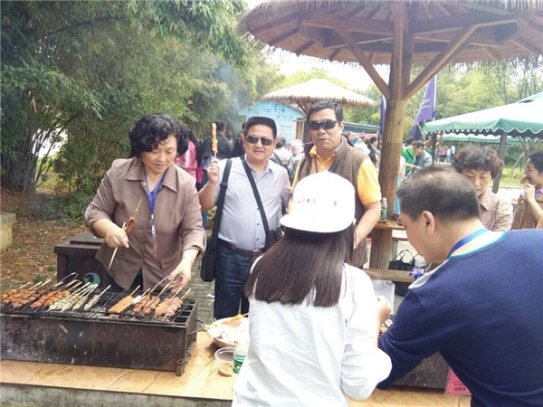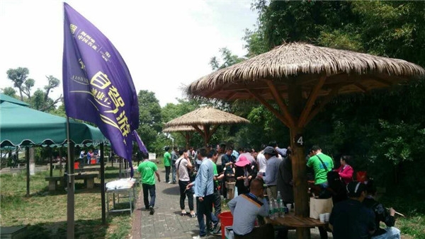 约一个半小时后,车队抵达荆门漳河水库风景区阳光沙滩。管家们一番张罗,很快就在业主的帮助下架好了烧烤架。业主中,有新婚夫妇,有一家三口,也有祖孙三代,管家分发食材,业主争当大厨,你一言我一语,其乐融融。