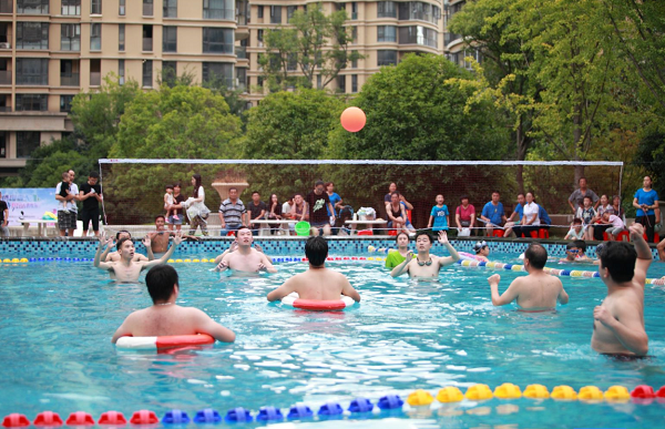 随着集团总经理王林宣布运动会正式开始,大家开始了5个陆地趣味团体项目、1个水上排球、3个游泳单人赛和两个亲子项目的激烈比拼,生动有趣的比赛吸引了大批业主驻足观看。