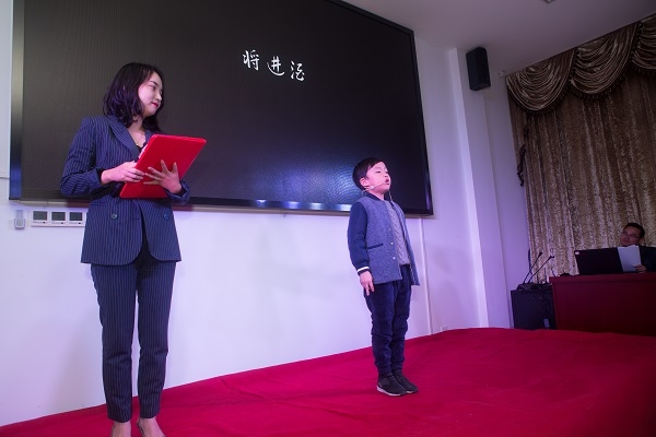 5号选手、设计研发部朱莎莎母子演绎《将进酒 乘大白》