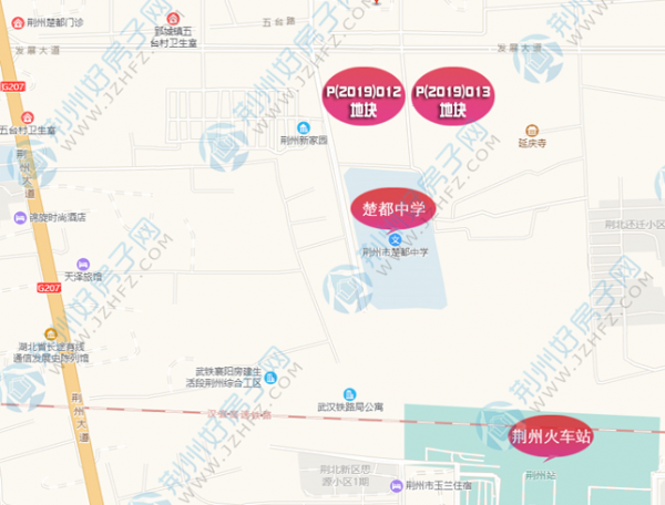 P(2019)012、P(2019)013地块为相邻两地块,位于荆北新区,荆州火车站北面,南临九年制义务教育学校楚都中学、西临百盟光彩商贸城、北临发展大道,学区配套完善,交通区位优势明显,环境优越,潜力巨大。两地块共计122亩,容积率2.5,建筑面积约21万方,规划要求配建幼儿园。