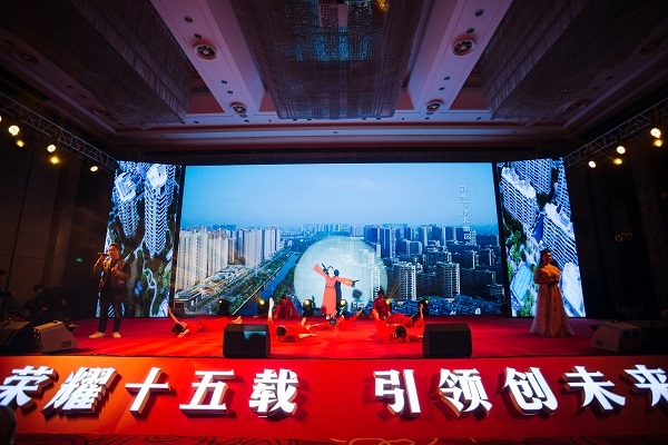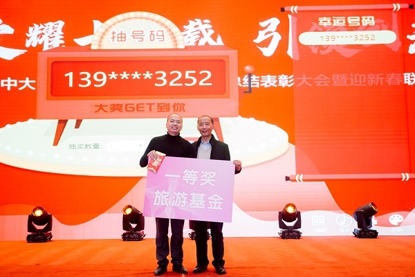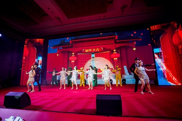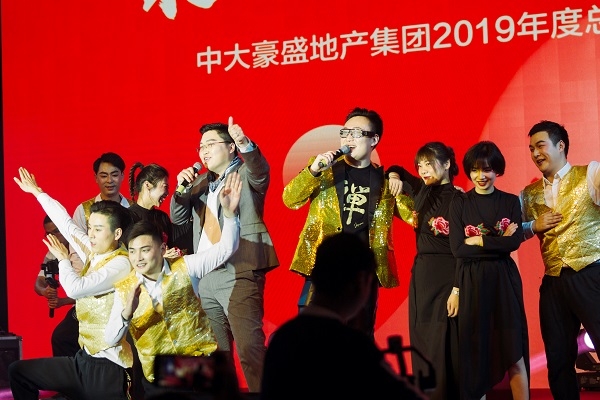 场内更加精彩。中大豪盛企业宣传片首发正式拉开活动序幕。6分钟的短片,概述了集团的成就与实力、理念与项目、战略和未来,大气恢宏的呈现让人倍感振奋,荣耀感油然而生。一年一度的总结表彰环节,用海报、视频配颁奖词的形式,对6名奋斗之星、20名先进工作者、3名优秀管理者、1名突出贡献奖、3名销售明星、两个特别成效奖和3个先进集体进行了展示,他们的先进事迹和优秀作风引发在场人员强烈共鸣,现场掌声雷动。迎新春联欢会的文艺节目内容丰富、主题鲜明,集团员工、物业公司、合作单位齐上阵,体现了浓厚的文化味儿和团圆喜庆的热闹氛围。穿插在活动中的微信抽奖,掀起现场阵阵高潮。