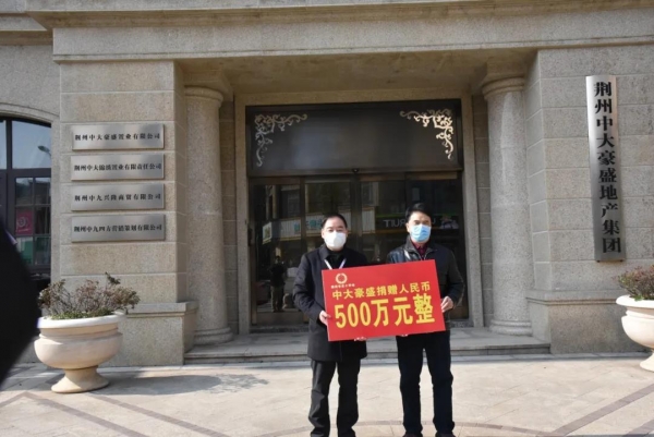 新冠病毒肺炎疫情爆发时,中大豪盛率先向荆州市红十字会捐赠500万元,并为商业街商户免租一个月,为物业公司拨付10万元专项资金,用实际行动与荆州人民一道抗击疫情,共克时艰。