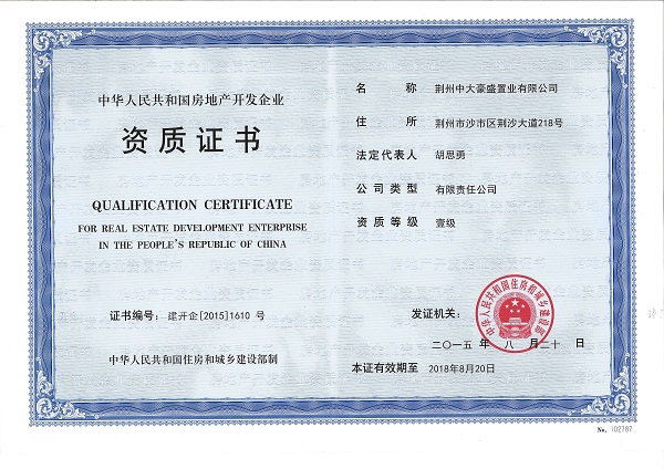 近日,中大豪盛地产集团母公司荆州中大豪盛置业有限公司喜领房地产开发企业一级资质证书,成为荆州唯一(湖北共28家)持一级资质的房地产开发企业。 去......