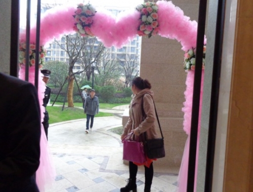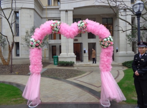 通过与业主的及时沟通,物业服务中心提前掌握了业主结婚当日的时间安排、婚庆车辆等基本信息,提早做起了准备。清晨8点钟左右就开始了紧张忙碌的准备工作。客服管理员、安防员在业主家单元门前铺设好红色地毯,安放爱心拱门,在楼栋一层布置婚庆物品。准备迎接新人;婚庆车队一到,位于园区门岗的安防员就热情、及时地协助车队安排行车路线和停车区域,做好嘉宾引导服务;我们在场全体人员夹道欢迎,共同祝愿这对新人。婚庆车队准备驶离园区时,安防人员又以整齐、规范的军姿、军礼相送,为一对新人送去佳园物业的真挚祝福。