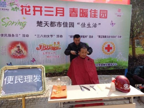 2014年,为贯彻落实三大园区生活服务体系,楚天都市佳园物业服务中心计划在此后每月的第一个周末都举行一次便民服务活动。3月我们请来了修鞋、磨刀、理发的师傅,连续两天在园区为业主们提供免费义务服务。活动的举办得到了业主们的高度赞扬。
