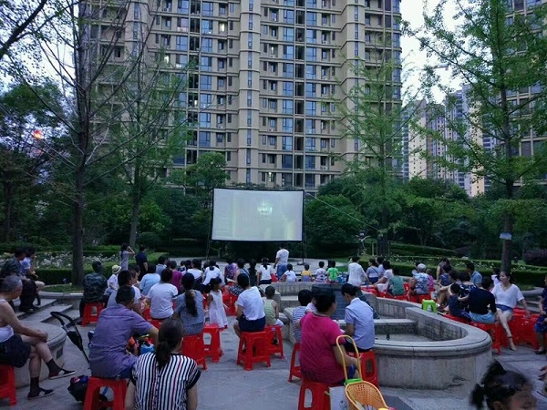 盛夏时节的每个周六晚上,楚天都市·佳园物业服务中心都会为业主播放精彩的电影大片。今年是佳园的第四届星光电影节,观露天电影已经成了佳园业主暑期休闲娱乐的习惯。