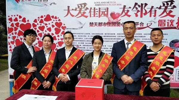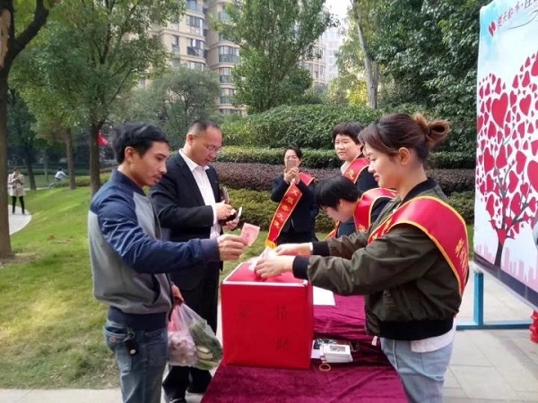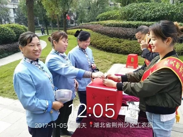 2017年11月5日上午,一场关爱楚天都市·佳园业主秦琼的募捐活动,在佳园东门内侧的园区通道温情进行。这场活动由楚天都市生活圈志愿者服务站发起,佳园物业服务中心组织。