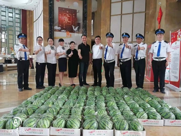 “孙管家,一直蛮感谢你们物业的关照,明天送些西瓜来,一定要收下啊!”2019年6月5日,楚天都市·诚园7#楼一名业主用面包车将1000斤冰糖瓜送到诚园,让诚园物业服务中心管家孙学林和同事们都惊呆了。6月11日,这家业主再次来到诚园物业服务中心送上两面锦旗,对管家和秩序维护部表示感谢。
