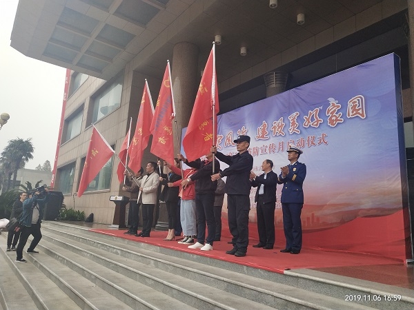 为表彰支持和热爱消防公益事业,长期义务坚持开展消防安全工作的集体,在2019年11月6日荆州市人民政府主办的“2019年荆州市119消防宣传月启动仪式”上,全市6家单位被评为“荆州市消防志愿者”并授旗,物业荆州分公司应急分队位列其中。