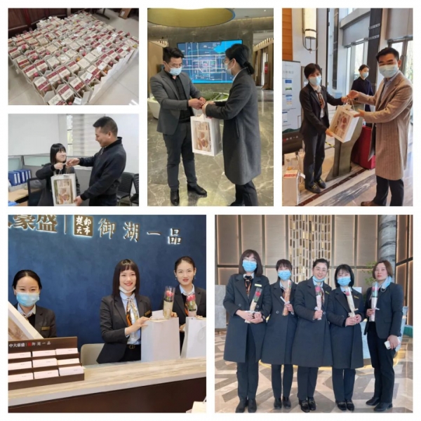 一大早,各单位的男士们就忙碌了起来,为身边的女神们送上礼物和祝福。这一暖心安排,让并肩作战的中大豪盛人心更近、劲更足了。
